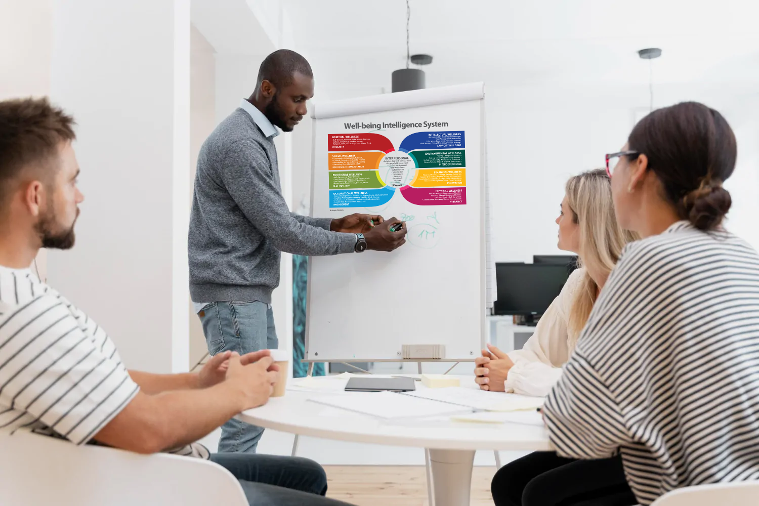 In October, we will work closely with our clients to help their teams not only define their vision but also integrate well-being prompts and microskills into their daily work routines. This ensures that both the organization and its people are aligned with a clear and actionable path forward.